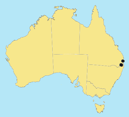 only from the trachyte rocks of the Glass House Mountains, Mt Barney, Mt Ernest