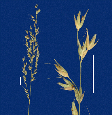 Glumes. Glumes dissimilar, thinner than fertile lemma. Lower glume ovate, membranous, keeled, 1-keeled, 3–5 -nerved. Upper glume ovate, membranous, keeled, 1-keeled, 5 -nerved. Florets. Basal sterile florets 1, male, with palea. Lemma of lower sterile floret 100 % of length of spikelet, membranous, 1-keeled, 3–5 -nerved.