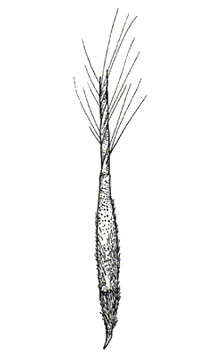 Lemma apex awned, 1 -awned. Median (principal) awn 40–50 mm long overall, with