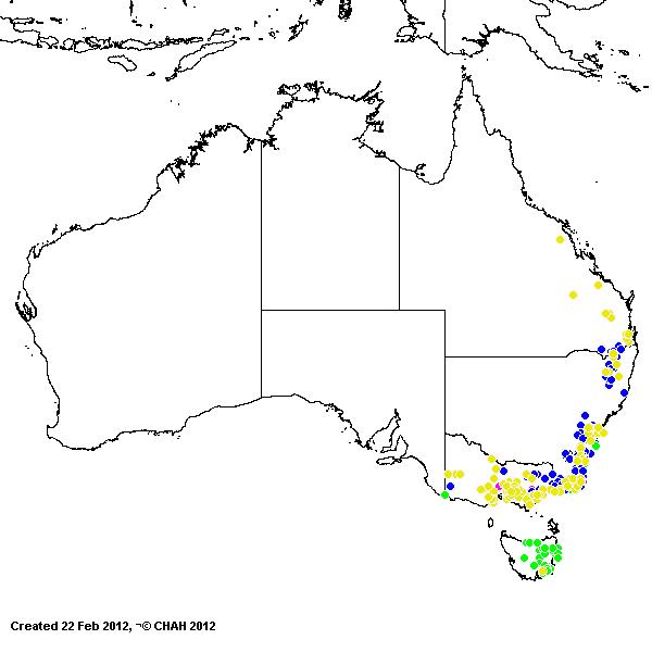 A widespread species of higher areas in eastern Australia,