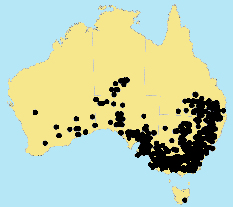 Tasmania and Northern Territory. Most abundant in the summer rainfall region.