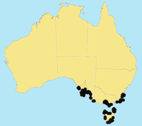 Distribution: South Australia, New South Wales, Victoria, Tasmania.