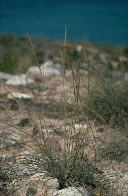 Lemma apex entire or lobed, awned, 1 -awned. Median (principal) awn 30–45 mm