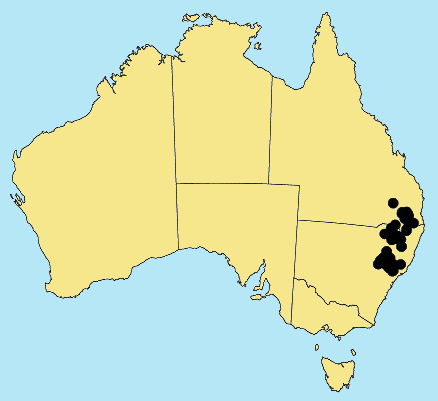 the Gt Divide in northern N.S.W. extending to Sydney. It is thought to be of