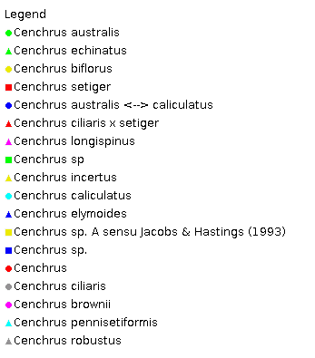 Notes. The genus can usually be recognised by its prickly burrs, but it approaches closely to Pennisetum, especially P. basedowii and P. ramosum in which the bristles are somehat flattened (Clayton and Renvoize, 1986).