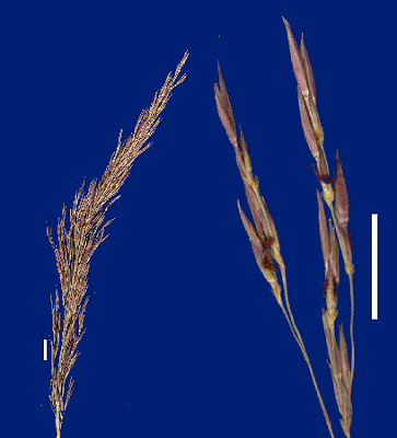 Inflorescence. Inflorescence compound, a panicle of rames. Panicle lanceolate, 11–17 cm long, 1.2–5.5 cm wide. Rhachis fragile at the nodes.