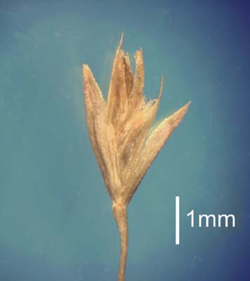 Fertile lemma 2 mm long, without keel, 5 -nerved. Lemma apex dentate, muticous