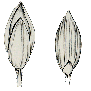 sterile floret 100 % of length of spikelet, membranous, 7 -nerved.
