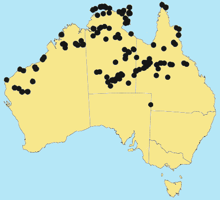 Australian Distribution: Western Australia, Northern Territory, South Australia, Queensland, Cocos Keeling Is, Ashmore Reef, Coral Sea Is.