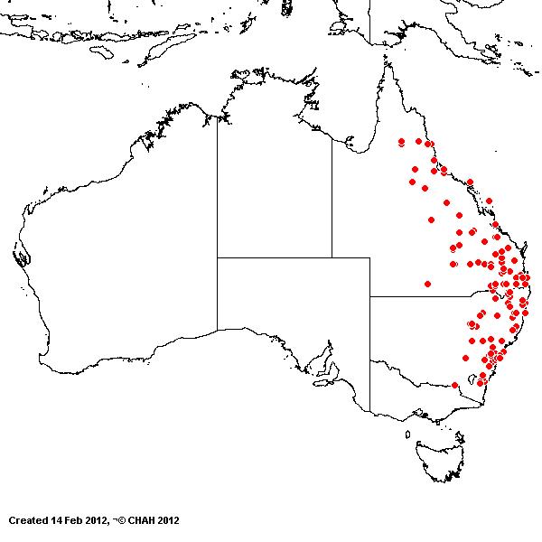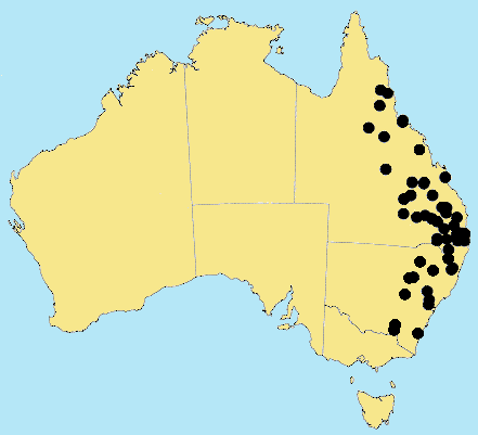 Distribution: Queensland, New South Wales, Victoria (extinct APC).