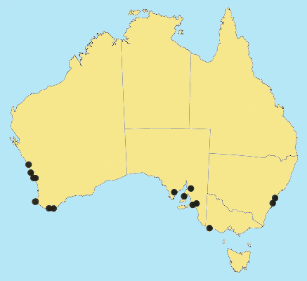 N.S.W., Vic., S.A. and W.A. Native of S Africa. On beach fore dunes. Flowers