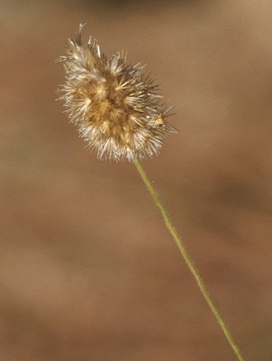 capitate, prominently exserted panicles; short, entirely plumose awns and