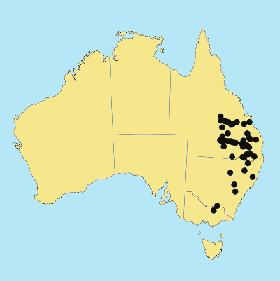 occurs throughout central southern Qld. and into E N.S.W. Chiefly on brown