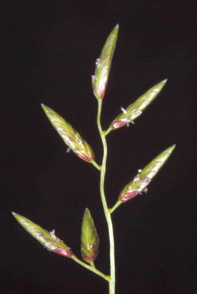 Fertile lemma 2–2.6 mm long, keeled, 3 -nerved. Lemma apex muticous. Palea 2 -nerved. Anthers 3. Grain 0.8–1.2 mm