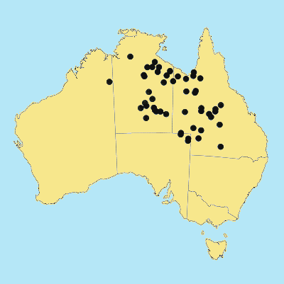 occurs on Gordon Downs Stn in W.A. just near the border, then throughout