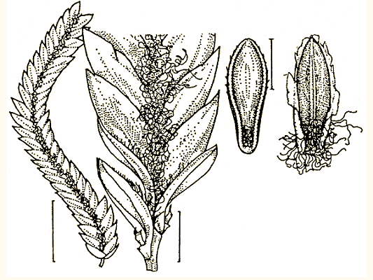 Inflorescence compound, a panicle. Panicle linear or lanceolate, 8–20 cm long.