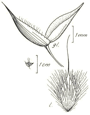 pulvini, small spikelets, florets slightly shorter than glumes, long-ciliate
