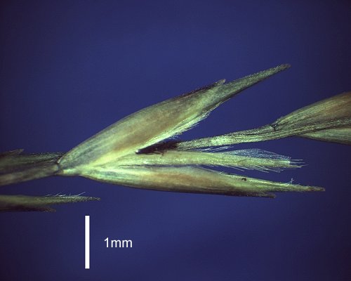 inflorescence, obliquely attached glumes, florets longer than glumes, awnless