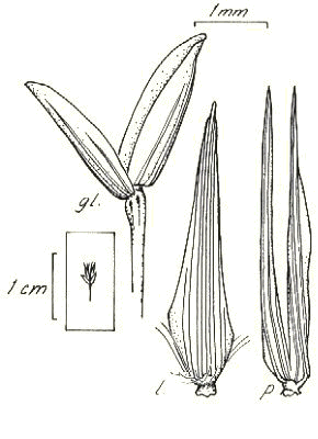 muticous. Lodicules present. Anthers 3. Grain 1.5–1.7 mm long.