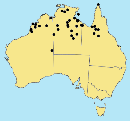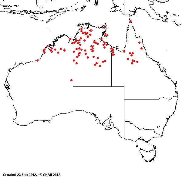 Predominantly N of 22ºS in Qld, N.T. and W.A. Deep sands and loams on plains