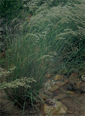 Distinguishing characters include wiry branched glabrous culms, awnless