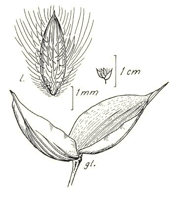 mostly glabrous), and the glumes are broadly ovate-elliptic, obtuse, mucronate