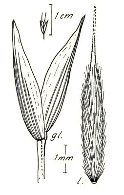 indumented. Lemma apex awned, 1 -awned. Median (principal) awn 1.5–8 mm long