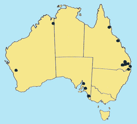 Australian Distribution: Western Australia, South Australia, Queensland, New South Wales.