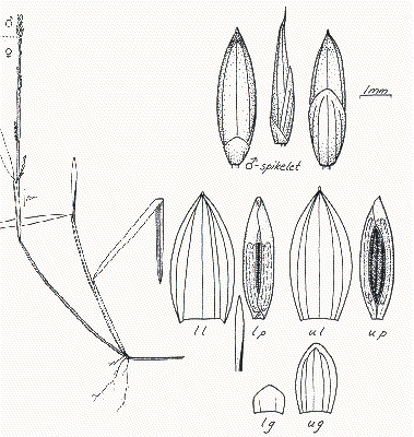 without keels, 0 -nerved. Upper glume ovate, 1.2–2.3 mm long, membranous,
