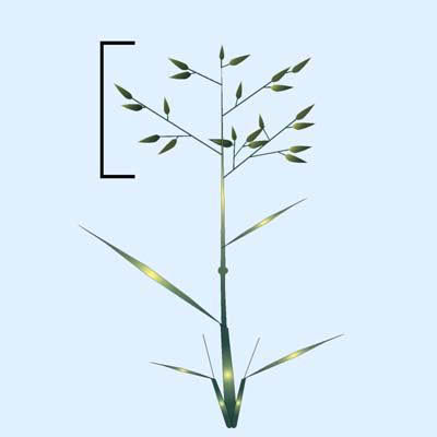 - Panicle (spikelet distribution- if open or contracted, but not raceme-tipped)