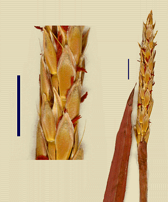 cluster. Companion spikelets developed, containing empty lemmas or male, 6–8 mm