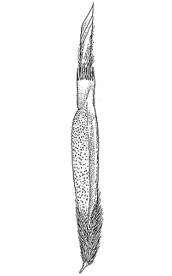 Florets. Fertile lemma 5.3–5.7 mm long, without keel. Lemma surface indumented. Lemma apex entire, awned, 1 -awned. Median (principal) awn 50–60 mm long overall, with a twisted column. Column 20–30 mm long. Palea without keels. Lodicules present. Anthers 3.