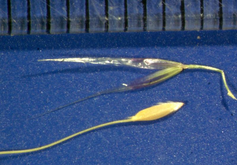 Lemma apex awned, 1 -awned. Median (principal) awn 50–90 mm long overall, with
