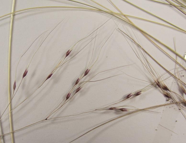 Florets. Fertile lemma 1.5–2.5 mm long, keeled. Lemma apex awned, 1 -awned. Median (principal) awn 15–35 mm long overall, with a twisted column. Palea 0 -nerved, without keels. Anthers 3. Grain 1.2 mm long.