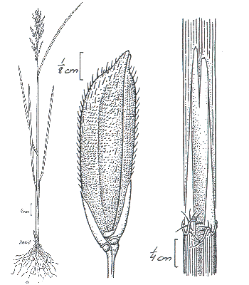indumented. Lemma apex muticous or awned, 1 -awned. Median (principal) awn