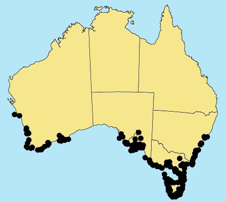 N.S.W., Vic., W.A., S.A. and Lord Howe Is. Flowers Sept.-Jan. Fruits Dec.-?.