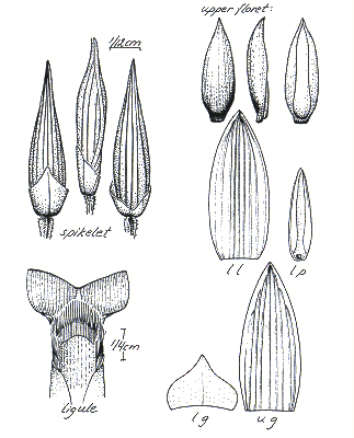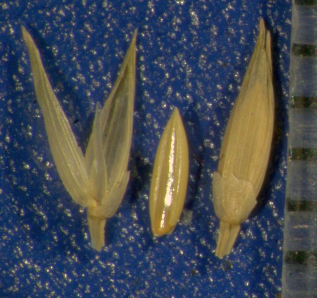 mm long, without keel. Lemma apex muticous. Anthers 3. Grain 1.5 mm long.