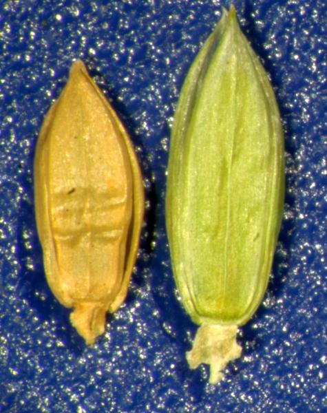 Upper glume elliptic, 2.5–3.7 mm long, membranous, without keels, 2–6 -nerved.