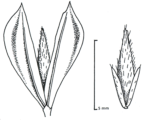 -nerved. Upper glume surface asperulous, indumented. Florets. Basal