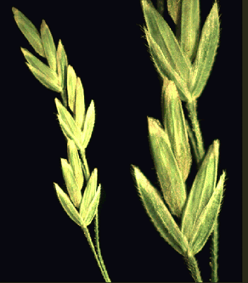 to the base; the distinct cilia on the lemma margins and palea keels.
