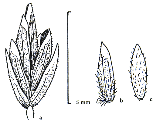 indumented. Lodicules present. Anthers 3. Grain 1.5 mm long.