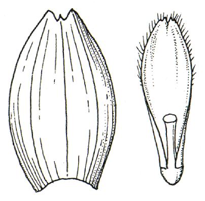 Fertile lemma 1.6–2.5 mm long, without keel, 7 -nerved. Lemma surface glabrous.
