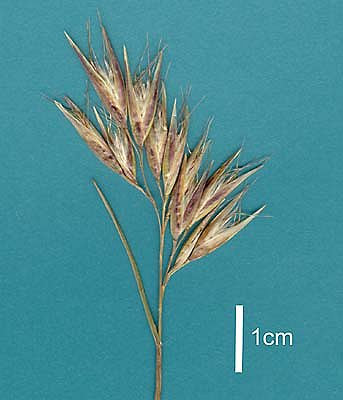 awned, 3 -awned. Median (principal) awn from a sinus, 11 mm long overall, with