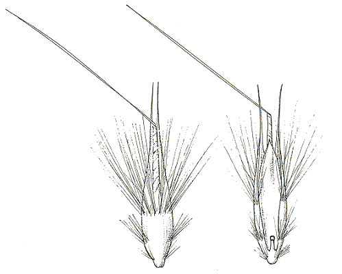 setae more or less as long as the lobes, and glumes more than 7 mm long; and
