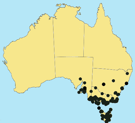 in south-eastern Australia, from Sydney to Adelaide, in clearings in