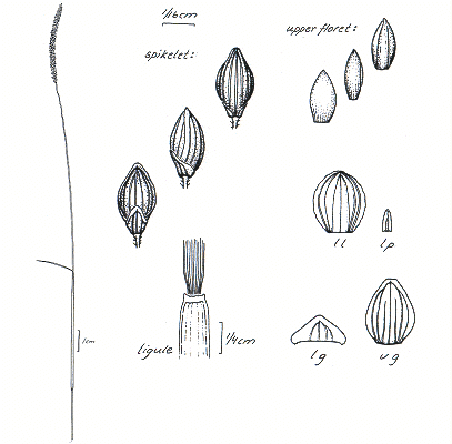 -nerved. Upper glume elliptic, 1.1–1.5 mm long, membranous, without keels, 7–9