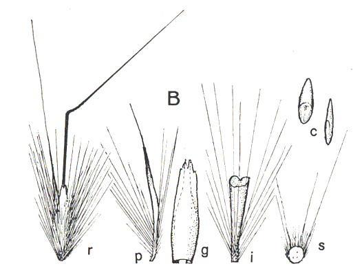 cluster. Companion spikelets rudimentary, comprising 2 unequal glumes without