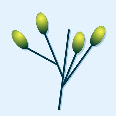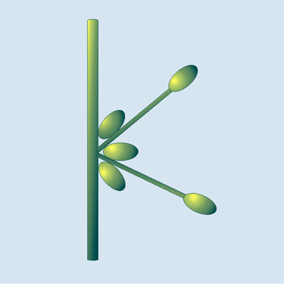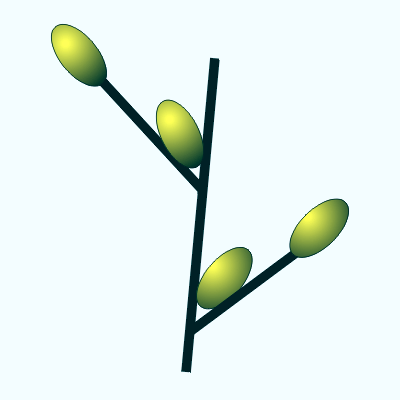 clustered at each node in a cluter of closely packed nodes subtended by an involucre