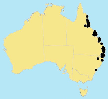 Australian Distribution: Queensland, New South Wales, Victoria, Christmas Is, Cocos Keeling Is, Ashmore Reef, Coral Sea Is.