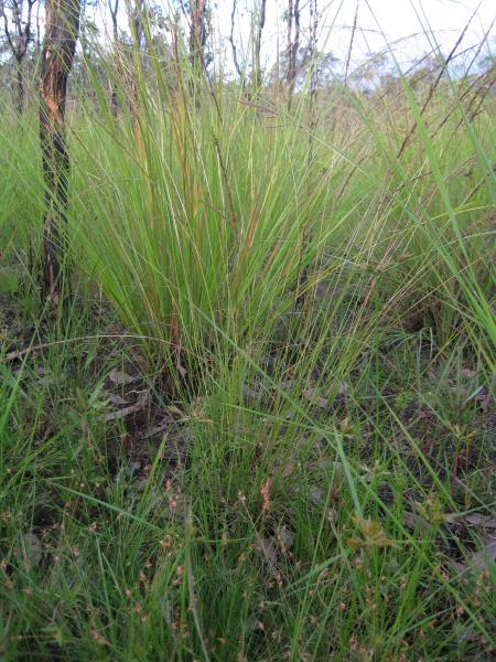 Habit. Perennial. Culms erect, 50–75 cm tall, 1–5 mm diam. Lateral branches simple. Ligule a fringe of hairs, 0.2–0.3 mm long. Leaf-blades filiform, flat or conduplicate or convolute, 40 cm long (to), 2.5–3.5 mm wide.
